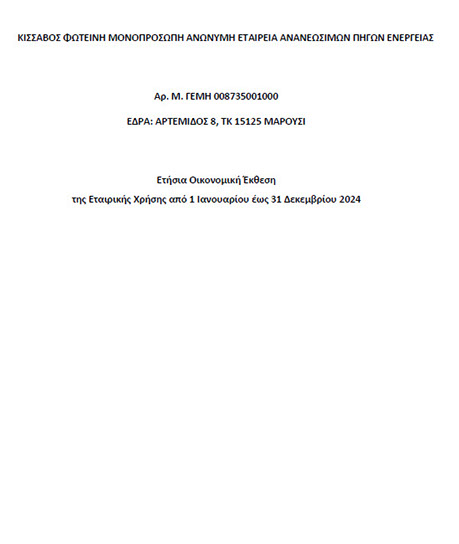ΚΙΣΣΑΒΟΣ ΦΩΤΕΙΝΗ ΜΟΝΟΠΡΟΣΩΠΗ ΑΝΩΝΥΜΗ ΕΤΑΙΡΕΙΑ ΑΝΑΝΕΩΣΙΜΩΝ ΠΗΓΩΝ ΕΝΕΡΓΕΙΑΣ
